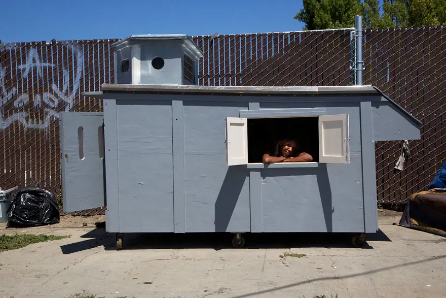 Deschide GaleriaUn exemplu foarte clar ne este dat de un artist din California, Gregory Kloehn, care confectioneaza casute mici si mobile pentru oamenii strazii. Aceste case sunt realizate din materiale reciclate, mai simplu spus, din gunoaiele gasite pe strada, din bucati de lemn, fier, sau chiar usi de frigider sau de dulapuri aruncate si multe alte solutii creative. Podelele sunt facute fie din paleti de lemn, fie din bucati de ceramica imbinate cu rabdare si lipite cu grija, ferestrele sunt geamuri de masini de spalat, iar acoperisurile sunt din plastic sau tabla. Toate aceste case din materiale reciclate sunt pe roti pentru a putea permite proprietarilor sa se deplaseze cu usurinta.