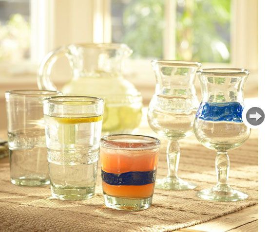 Aceste pahare foarte frumos stilizate au fost realizate din sticlele reciclate din Mexic.