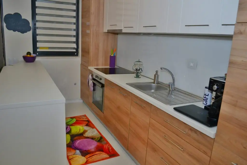 Suprafata apartamentului este de 49 metri patrati, se afla la demisol, intr-un bloc cu 2 etaje si are o terasa comuna cu apartamentul surorii mele. Este situat intr-un cartier nou din Cluj-Napoca, pe o strada linistita. Amenajarea apartamentului a durat cam 8 luni.