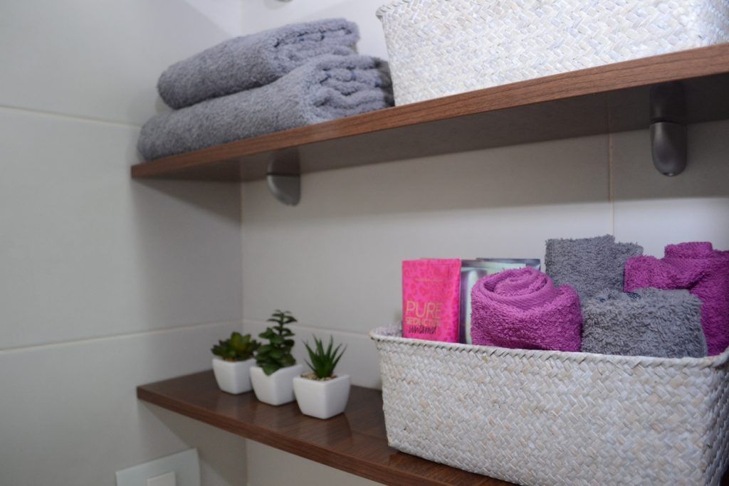 Placile de fond, care nu au un pattern puternic, sunt puse pe laturi lungi ale incaperii, reusind prin culoarea deschisa sa mareasca spatiul. Am combinat albul cu mobilierul de culoare cires japonez, contribuind astfel la un decor elegant si original. Accentele de culoare contrasteaza si inveselesc ambientul.