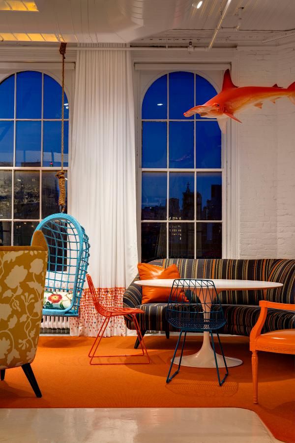 Aceste amenajari absolut adorabile sunt birourile unor agentii de publicitate sau de avocatura, iar un asemenea decor este cea mai buna carte de vizita pentru cei care vin in vizita. Un rechin portocaliu care atarna din tavan? Da! Eu unul m-as intoarce cu placere intr-un asemenea birou.