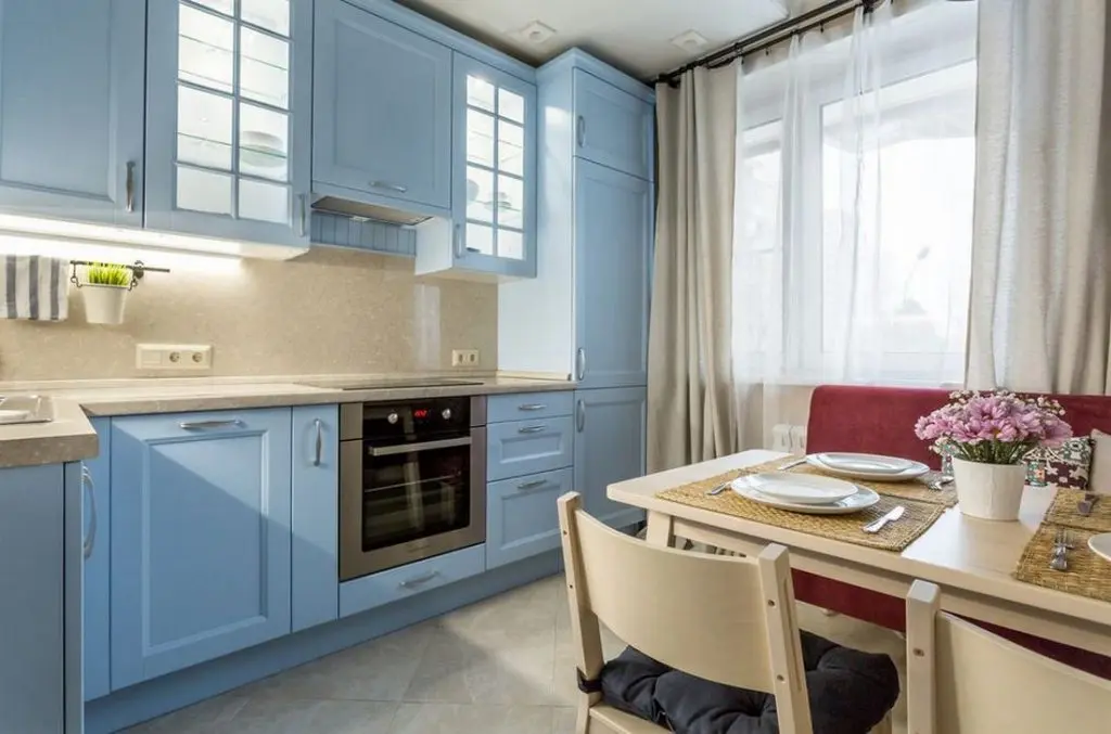 Si orientarea bucatariei conteaza! Daca incaperea primeste multa lumina pe tot parcursul zilei, culorile reci, precum albastrul sau verdele se pot integra usor in amenajare. In acest caz, pentru pereti alege variante neutre, calde, precumcremul sau bejul.