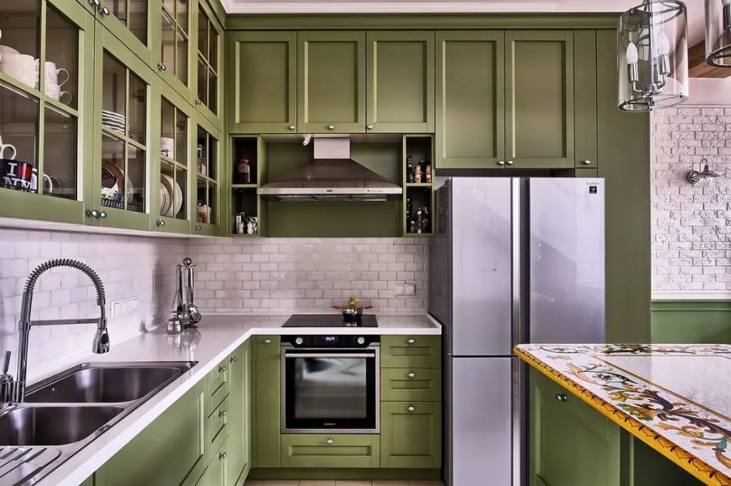Verdele relaxant isi gaseste usor loc in bucataria ta daca il asortezi cu suprafete din lemn natur, bejuri si chiar alb. Stilistic, va fi potrivit atat intr-o bucatarie moderna, cat si intr-una de inspiratie rustica.