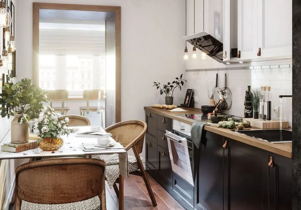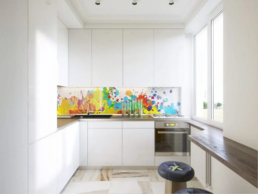 Obucatarie micava parea mai mare daca alegi o baza alba sau crem. Poti adauga ulterior accente colorate prin accesorii si decoratiuni sau piese de mobilier precum scaunele. Va fi cea mai usoara metoda de a scoate din monotonie o bucatarie.