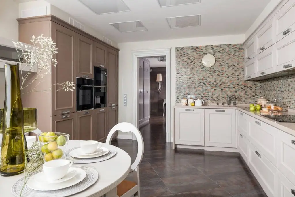 Intr-o bucatarie mare si luminoasa poti integra usor si tonuri mai inchise, poate chiar negru. I cazul in care optezi pentru astfel de culori, echilibreaza cu nuante mai deschise, neutre.
