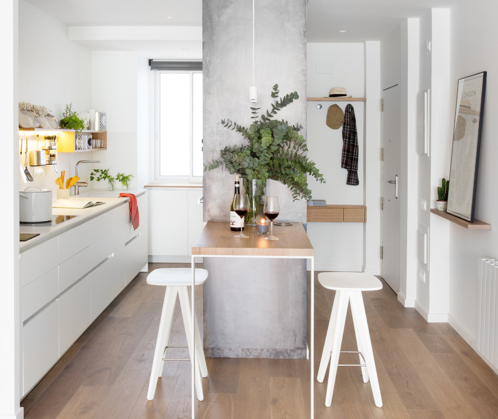 Inainte de a face orice modificare, trebuie sa stii exact ce spatiu ai la dispozitie. Unele configuratii de bucatarii pot fi dificile, in sensul ca aproape ca nu-ti mai ramane loc ca sa integrezi si o masa cu scaune. O bucatarie lunga si ingustaiti poate pune astfel de probleme. Solutii exista, din fericire.