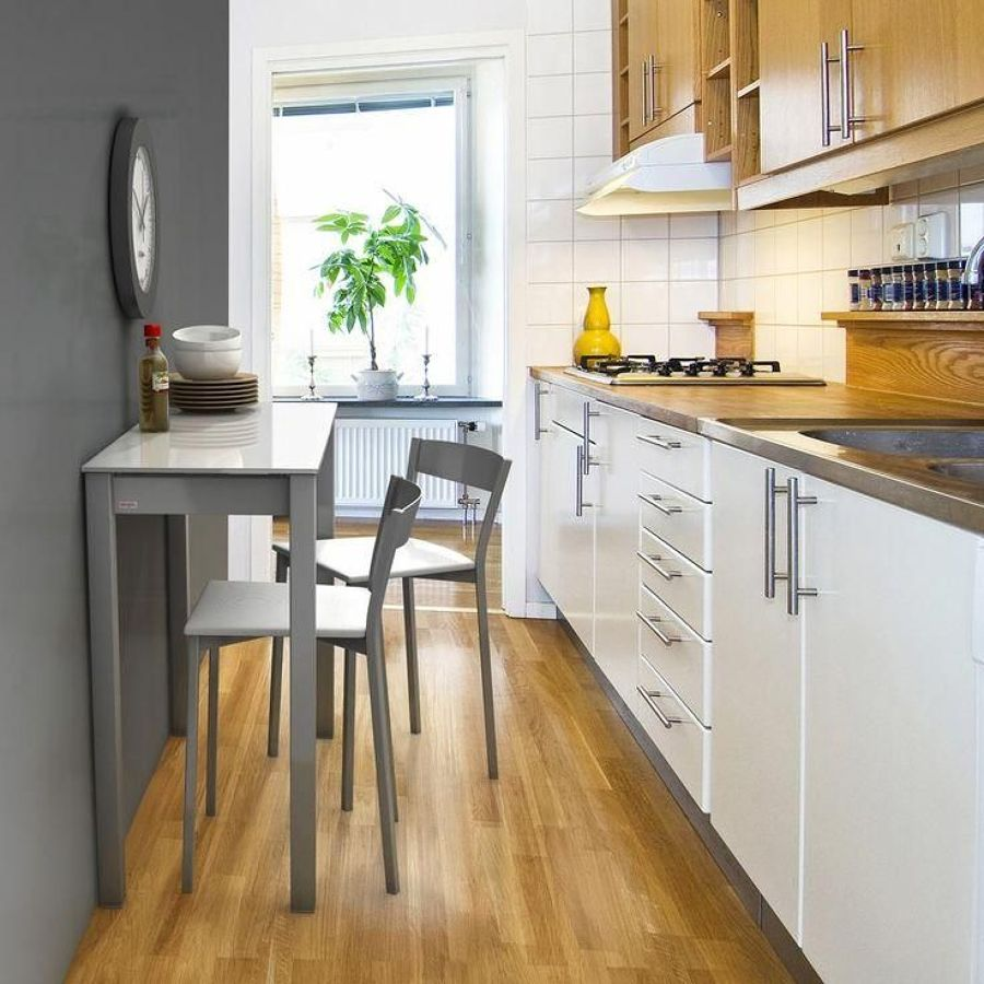 Deschide Galeria Daca in alte articole (vezi aici ) am abordat subiectul dispunerii mobilierului pentru o bucatarie cat mai functionala, astazi ne-am propus sa iti prezentam cateva idei utile despre cum poti integra o masa cu scaune intr-o bucatarie mica.