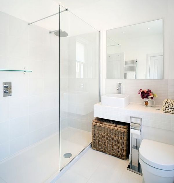 Model de oglinda pe masura spatiului. De remarcat ca aceasta nu depaseste linia lavoarului, conturand o simetrie pentru decor.