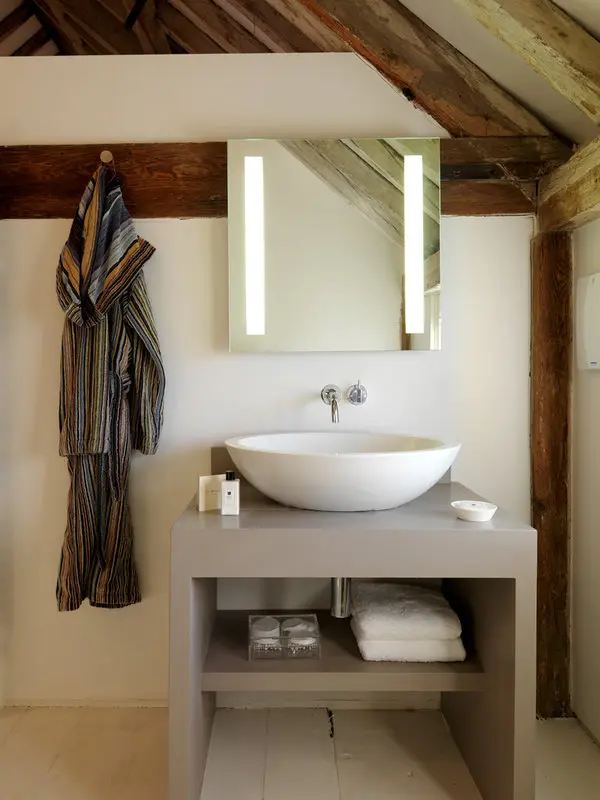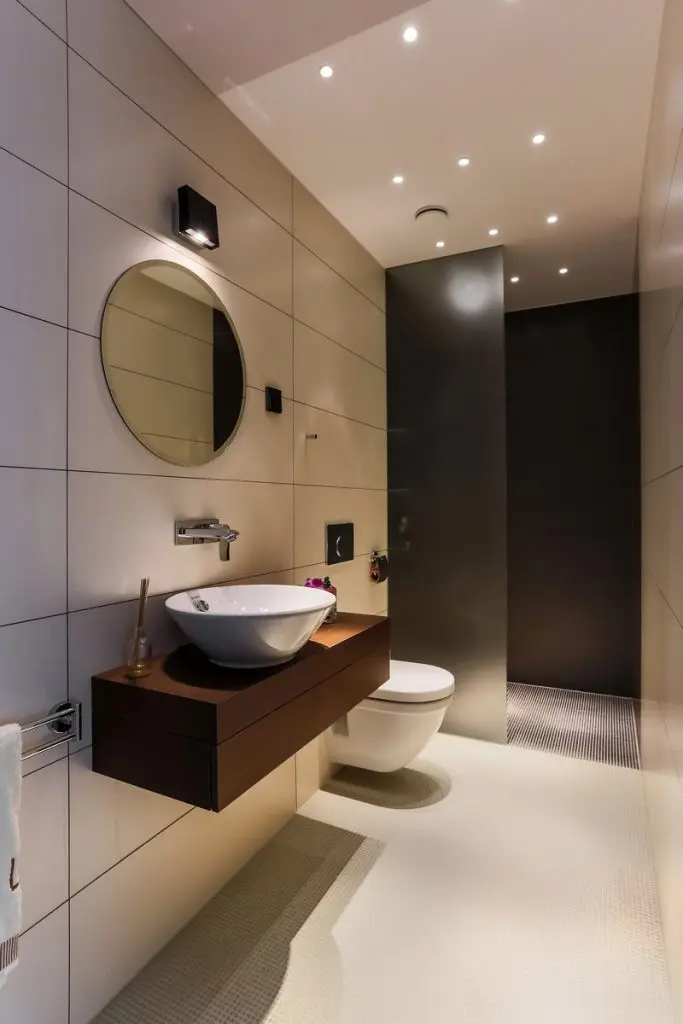 O alta propunere interesanta este cea a unei oglinzi cu benzi de lumina laterale, integrate. Pentru un model patrat, se poate asocia o chiuveta cu un model rotund.