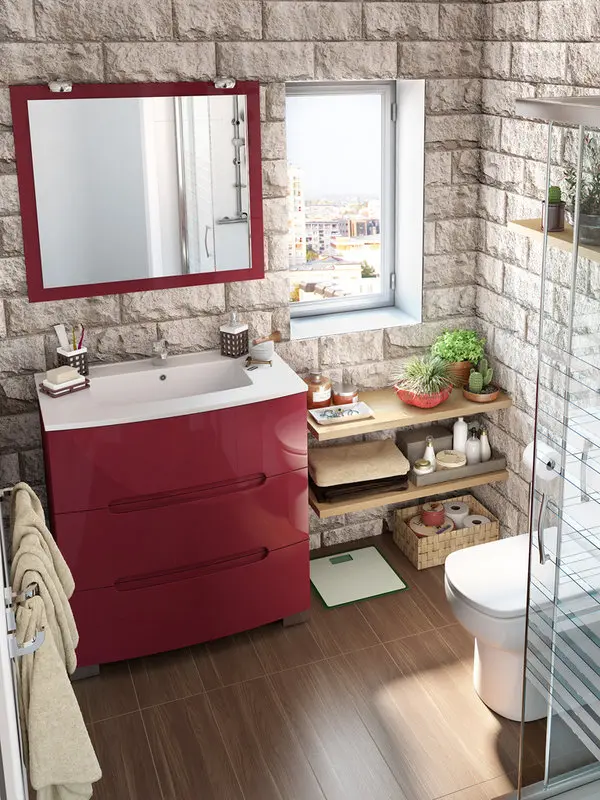 Model de lavoar cu finisaj rosu, acelasi finisaj regasindu-se si in rama oglinzii