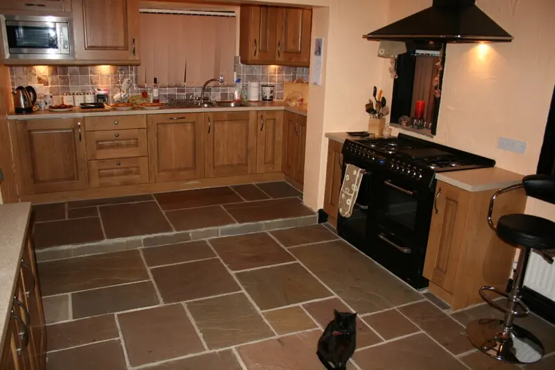 Gresiavine intr-o multitudine de modele si culori. Ca material de podea prezinta suficiente avantaje: este rezistenta in timp si se integreaza in orice bucatarie. Este bine de stiut ca montajul este dificil si va trebui sa apelati la o mana profesionista pentru rezultate bune. Daca veti scapa un obiect suficient de greu, ca un mojar de marmura de exemplu, sunt sanse mari ca gresia sa se sparga.