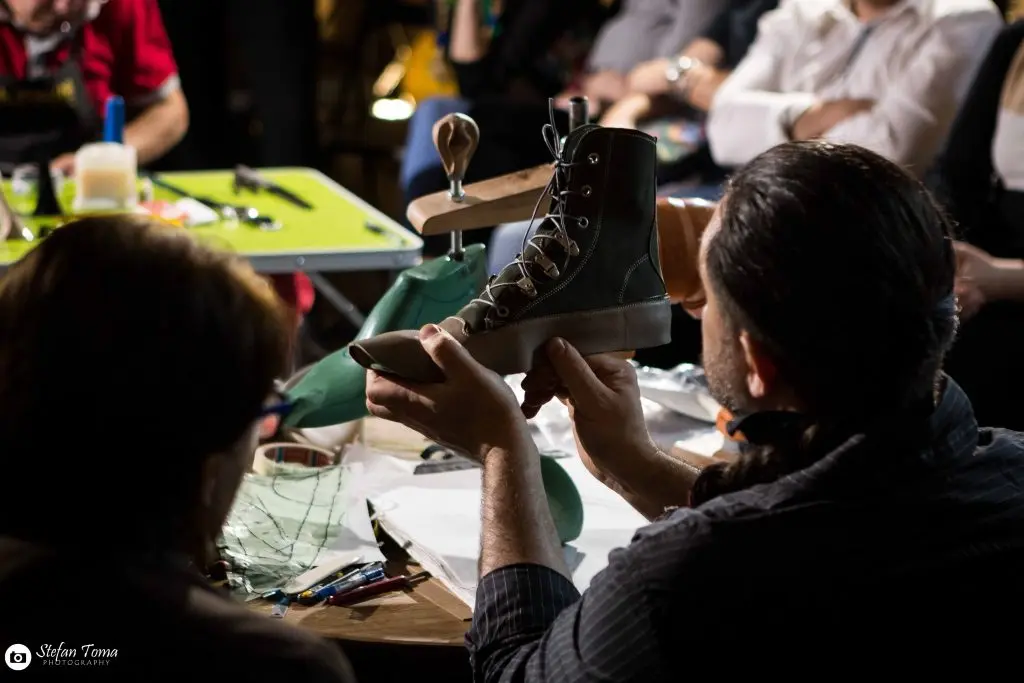 Evenimentul a fost incununat de un workshop inedit, in care maestrii pantofari Matei Corvin si Niculae Antochi, au realizat manual o pereche de incaltaminte din piele pe care au daruit-o unei participante norocoase.
