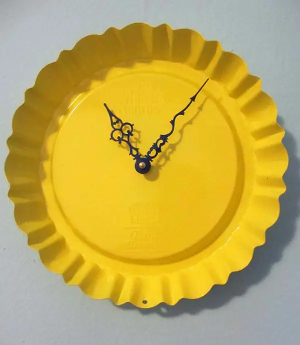 Idee de ceasuri din tava pentru tarta vopsita in galben.