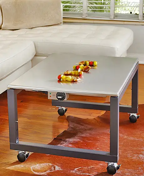 Partea cea mai buna a acestui gratar este faptul ca este pretabil inclusiv pentru cei care locuiesc la bloc, deoarece gratarul Teppanyaki se amplaseaza cu mare usurinta in sufragerie si arata ca o masuta moderna de cafea.
