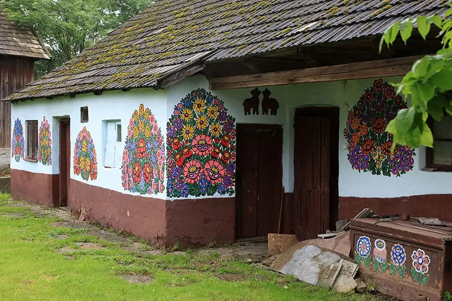 Satul polonez Zalipie, prin picturile sale si prin modul in care isi amenajeaza locuitorii acestei asezari casele si gradinile, seamana putin cu Cimitirul Vesel de la Sapanta, de la noi din tara, mai ales prin miloacele folosite pentru pictarea caselor.