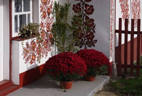 Florile au un loc aparte in Zalipie, atat in gradina, cat si pe peretii caselor