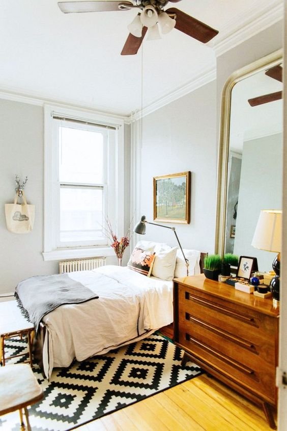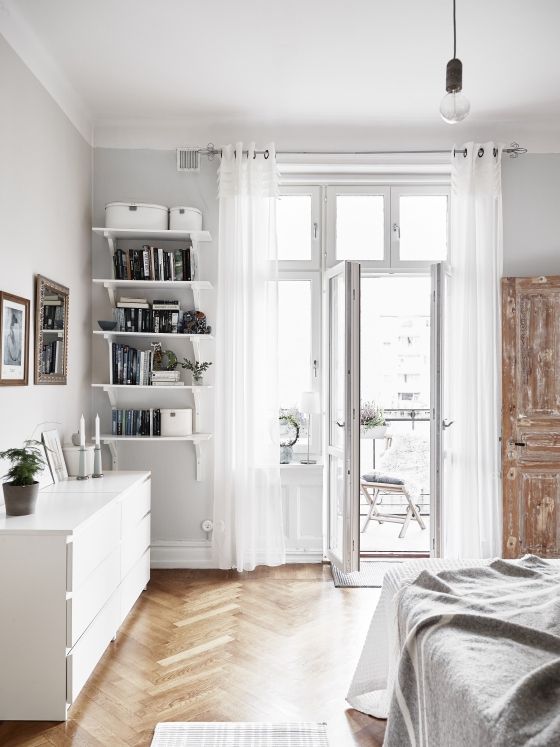 In acest dormitor, este clar ca lemnul este cel care da tonul. Comoda cu mai multe rafturi reprezinta un loc de depozitare extraordinar.
