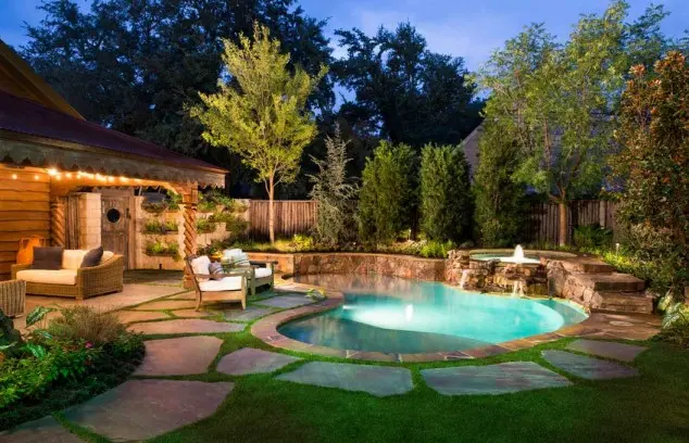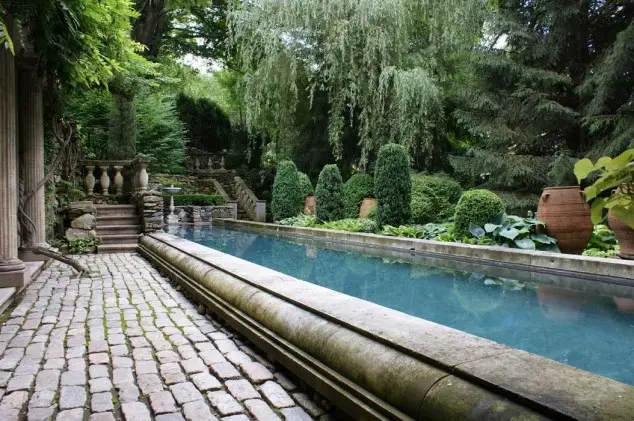 Apa cristalina nu poate lipsi din nici o piscina care se respecta, insa elementele inconjuratoare pot varia extrem de mult.