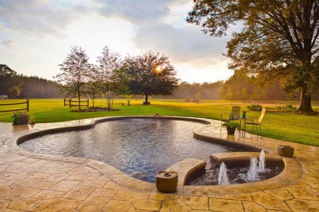 Apa cristalina nu poate lipsi din nici o piscina care se respecta, insa elementele inconjuratoare pot varia extrem de mult.