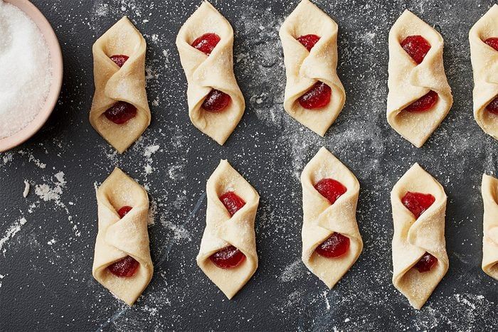 5. Cornuleţe “ribbon” cu gem de zmeură — variantă vegană
