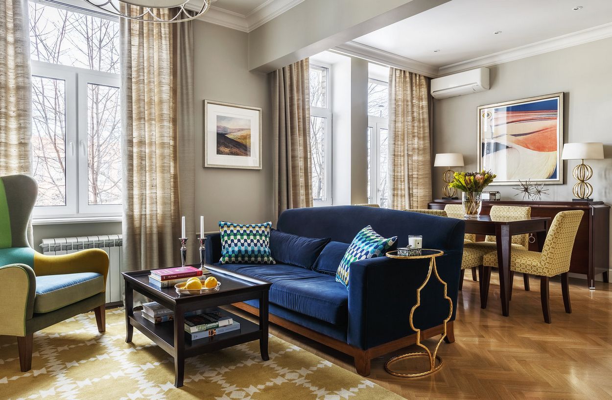Deschide GaleriaVorbim, mai exact, despre un apartament de trei camere, cu o suprafata de 79 metri patrati. Beneficiarii si-au dorit mult un camin inspirat din interioarele clasice, un semineu, culori vesele si o masa mare pentru momentele festive sau cele petrecute alaturi de familie si prieteni. Echipa de designeri cu care au colaborat a venit cu o propunere adecvata spatiului unui bloc, astfel incat dorintele lor sa fie indeplinite, dar si functionalitatea pastrata.