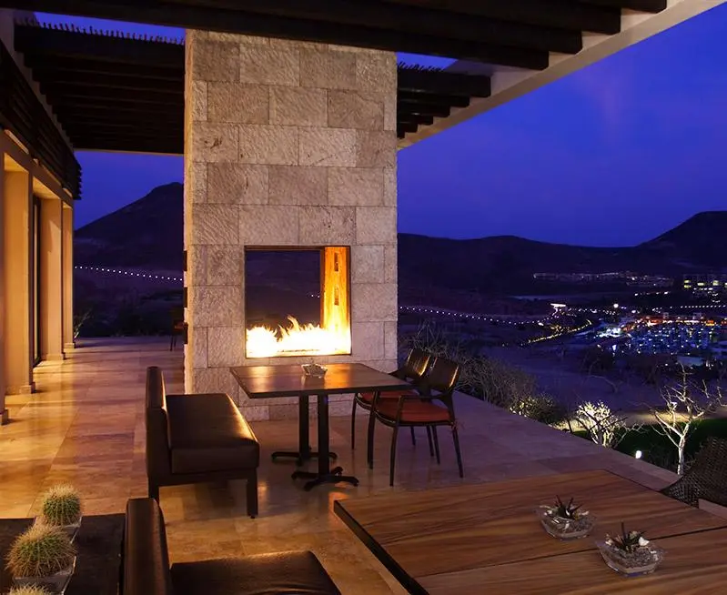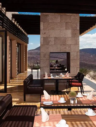 Terasa exterioara este situata la inaltime, cu o vedere larga asupra Marii Cortez, care are numeroase mese si spatii de gratar pentru membrii clubului.