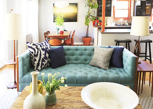 O variatie cu galben si turcoaz potrivita pentru camera de zi