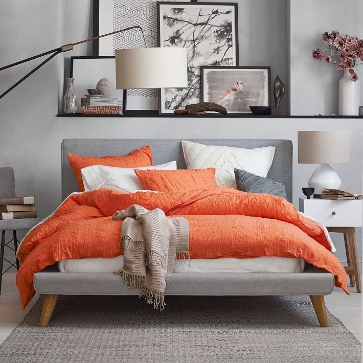 Dormitor cu elemente de culori calde de piersica si coral