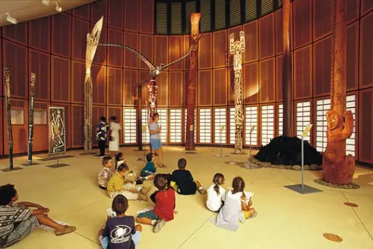 Chiar daca designul cladirilor este unul modern, se simte foarte bine suflul traditional, arhitectul inspirandu-se pentru crearea lor din colibele kanacilor si a populatiei indigene.