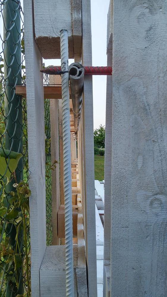 fixati paletii de pe marginea din spate cu barele de metal si legati-le bine cu sarma;