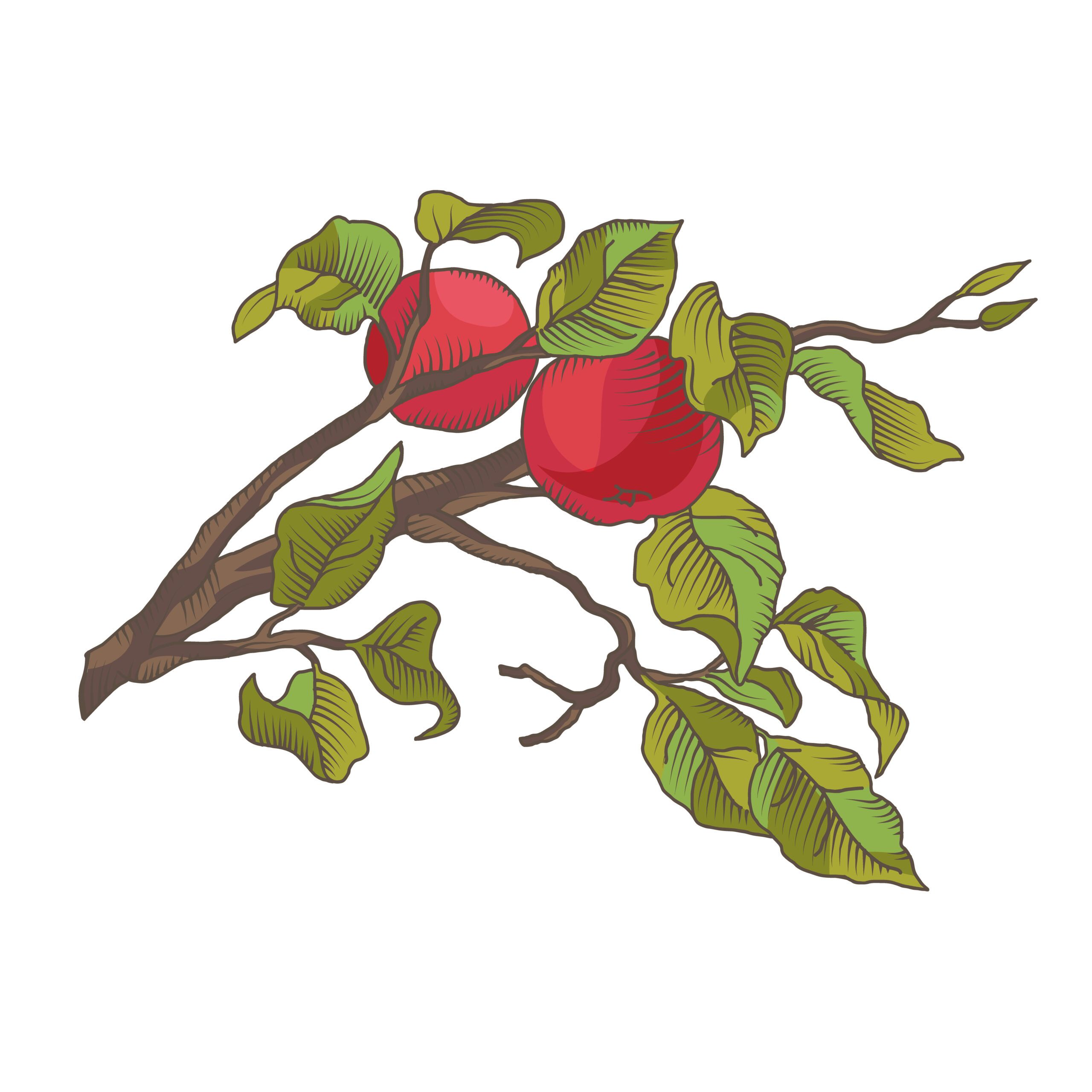 Hand drawing an apple branch with fruit. Vector illustration isolated on the white