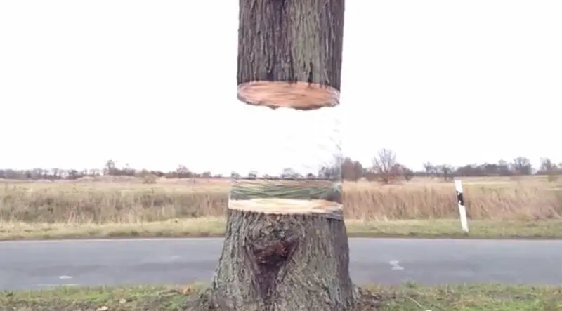 Cei doi artisti au ales sa fixeze pe copacii din padure un material reflectorizant, similar unei oglinzi, iar acesta da senzatia ca intreaga padure a fost taiata printr-o sectiune uniforma, aplicata tuturor arborilor din zona.