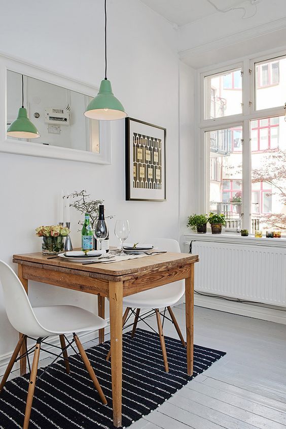 Si locul de luat masa poate fi evidentiat in cadrul amenajarii bucatariei tot printr-un covor asezat sub masa si scaune aceasta abordare functioneaza bine in bucatariile mai generoase, unde se poate separa vizual zona de gatit de zona de luat masa; altfel riscam sa cream o disproportie la nivel estetic.