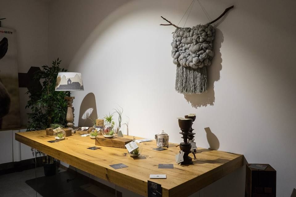Masa Floa Table Interiology si creatie Simple Knits (piesa expusa pe perete)
