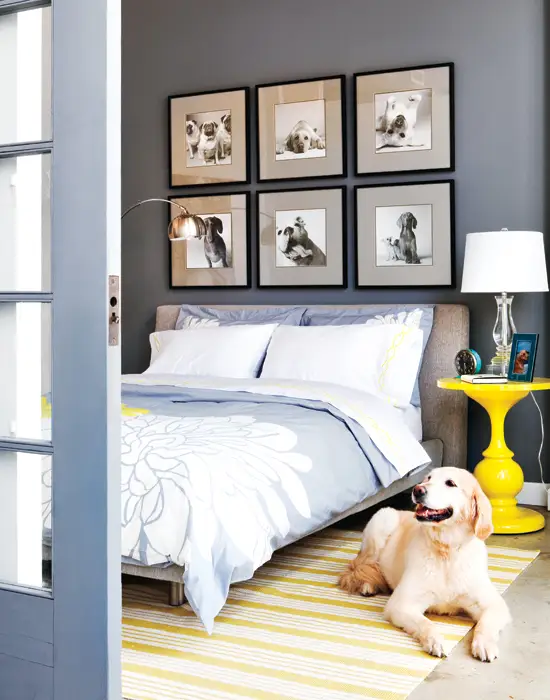 Nu recomandam galbenul puternic in cantitati mari pentru dormitoare. Fiind o culoare specifica oamenilor activ, miezului zilei si caldurii, aceasta ar putea agita si da o stare de disconfort. Rezumati-va la lenjerii de pat in tonuri de galben, cum spuneam mai devreme, o noptiera moderna, tablia patului sau poate un covor foarte moale.