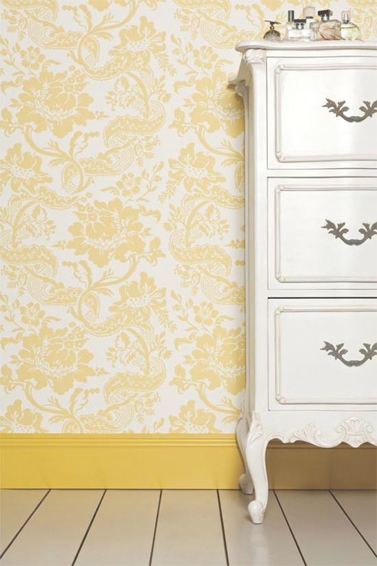 Daca insistati sa instalati un tapet si aici optati pentru galben pai sau galben miere.