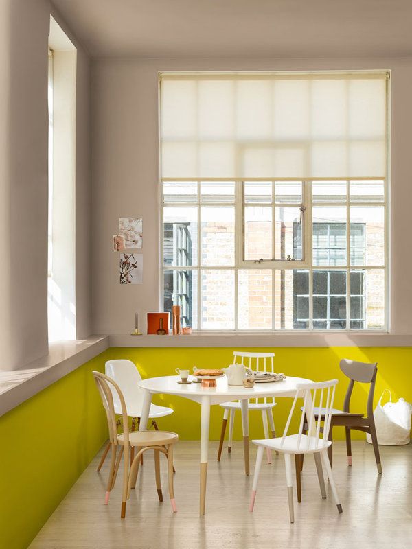 Tendintele in amenajari ne arata cat accent se pune pe personalizarea unui spatiu, in cazul de fata prin intermediul culorilor. Un efect special se creeaza cand la vopsirea unui scaun se opteaza pentru aplicarea stratului de culoare, la un sfert, trei sferturi sau doar la jumatatea lungimii piciorului scaunului. Restul partilor se vopsesc integral. Daca veti folosi culori diferite pentru fiecare scaun in parte, originalitatea va fi de partea voastra. Optati pentru nuante pastelate pentru ca vor indulci decorul si vor pune in valoare diningul, mai ales daca masa este alba.