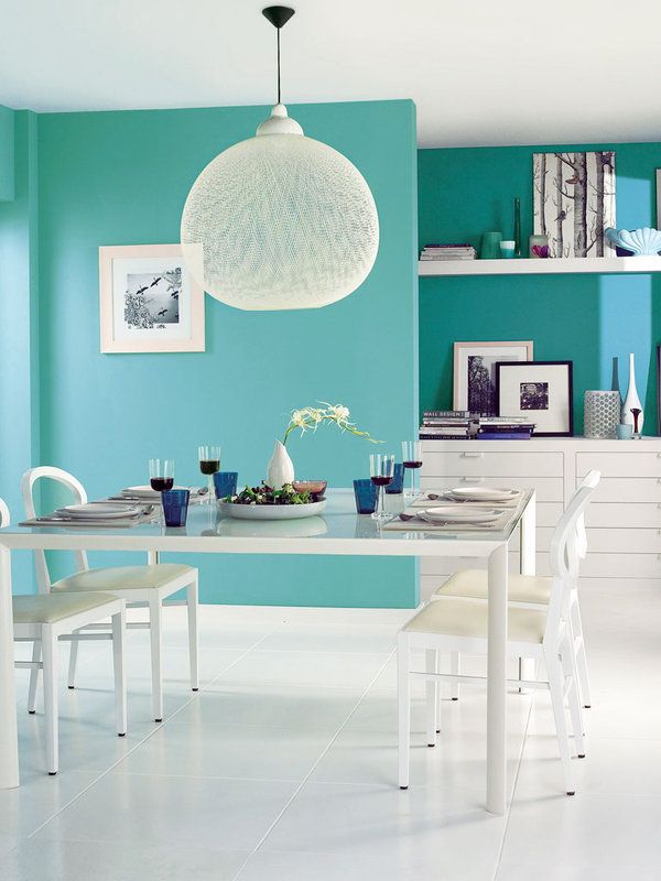 Turcoazul inspre verde, in tonuri saturate este recomandat pentru spatii de lucru, birouri sau zone de accent pe un perete pe care il doresti sa il evidentiezi. Nu il folosi pe tot peretele ci mai degraba in dungi groase.
