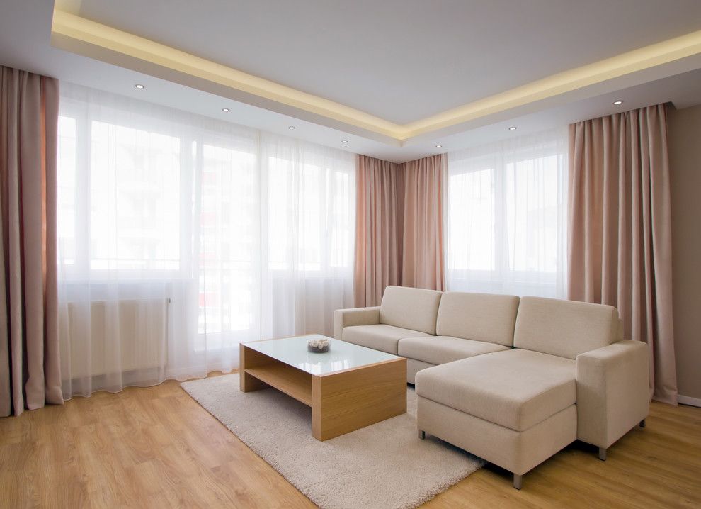 Pentru living, canapeaua tip coltar si corpul de mobilier din jurul televizorului compun amenajarea. Micile detalii decorative ajuta la o personalizare discreta, cum ar fi masuta de cafea, tablourile sau corpul de iluminat.