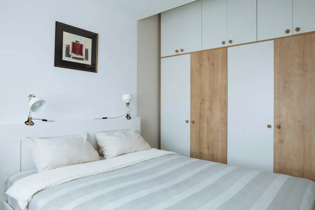 Dormitorul matrimonial imbina perfect culorile deschise si texturile calde cu tablourile, iar pick-up-ul parca te transpune in lumi boeme.