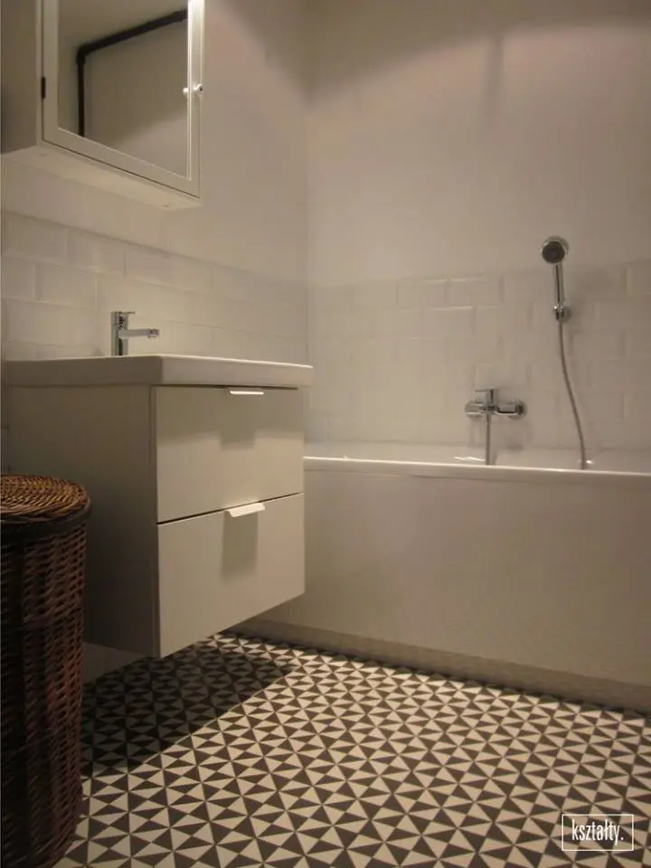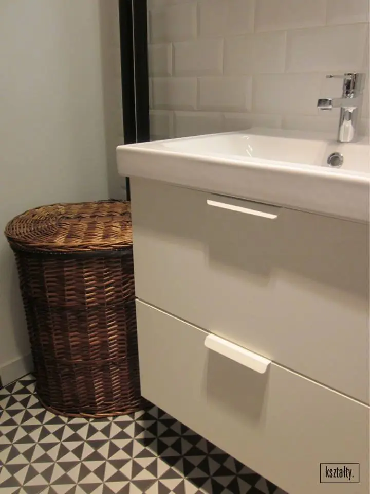 Vechile placi ceramice, atat faianta cat si gresia au fost eliminate si inlocuite cu modele moderne. Pentru pereti s-a optat pentru placi tip Metro albe, iar pentru gresie placi decorative alb-negru. Albul este predominant, fiind optiunea sigura pentru o baie mica si intunecata precum aceasta. In plus, spatiul pare mai luminos si mai aerisit, desi suprafata este aceeasi.