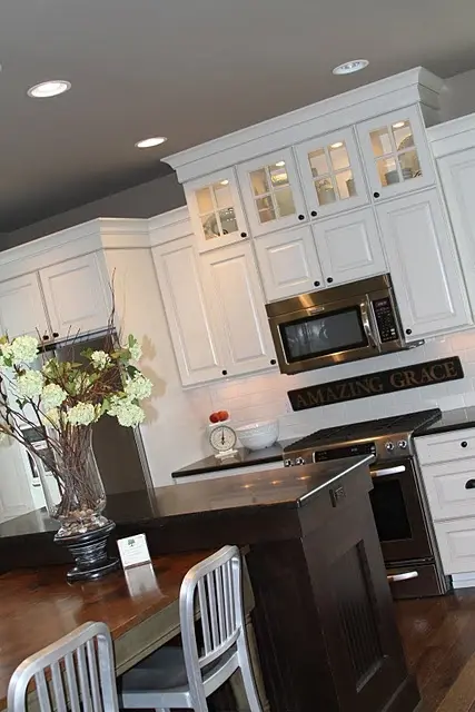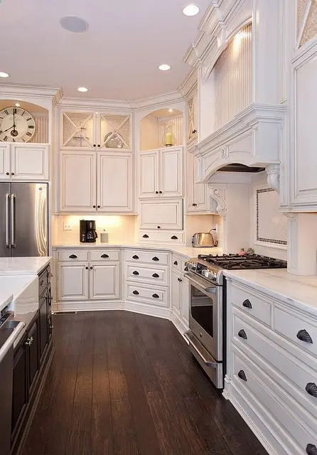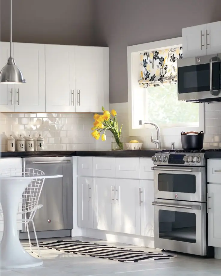 Dulapurile albe de bucatarie sunt banale, veti spune, insa cu ajutorul unor mici trucuri, puteti schimba asta. In plus, daca aveti o bucatarie redusa ca dimensiuni, dulapurile din lemn sau inchise la culoare nu vor face decat sa restranga si mai mult spatiul si sa va sufoce. Dulapurile albe aerisesc incaperea.