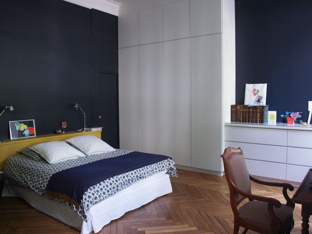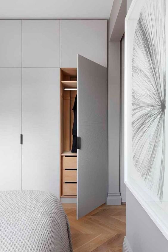 Chiar si pentru camerele cu o configuratie mai dificila, cum sunt cele lungi si inguste, exista posibilitatea instalarii unui dressing. Se poate opta pentru o delimitare cu un perete fals, o semi-incapere ce poate fi compartimentata dupa bunul plac. Pentru ca lumina naturala sa patrunda in acest spatiu nou creat, peretele despartitor poate fi unul cu o structura cu geam, asemanatoare unei ferestre (vezi modelul din galerie).