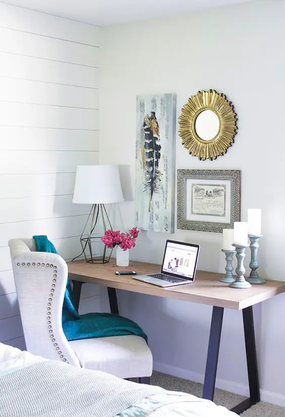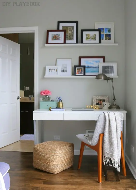Atunci cand incepi amenajarea zonei de lucru, este foarte important sa alegi coltul in care te simti cel mai confortabil. Daca, spre exemplu, vei alege sa pui un birou de mici dimensiuni in dreptul ferestrei, te poti bucura de restul peretilor pentru a pozitiona piesele mai mari de mobilier in dreptul lor.