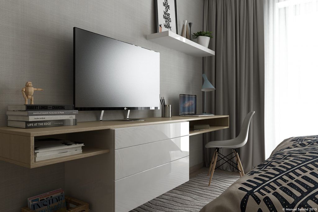 Poti opta si pentru un pat suprapus, sub care sa iti organizezi mobilierul pentru birou. Astfel, vei avea un dormitor original si foarte spatios.