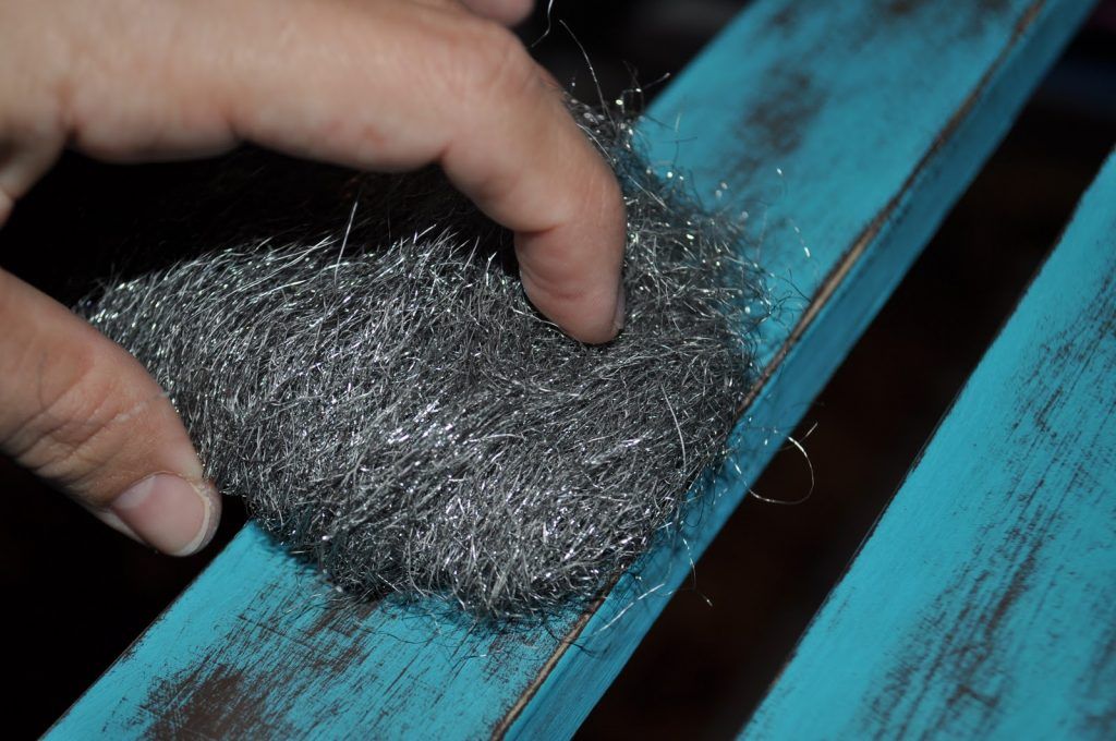 Dupa uscarea celui de-al doilea strat, slefuiti cu un smirghel foarte fin diferite zone ale suprafetei lemnoase, pentru a lasa la vedere primul strat de vopsea si, pe alocuri, slefuiti mai puternic pentru a scoate la lumina esenta lemnului natural.