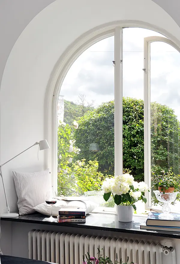 Daca nu exista posibilitatea de a indeparta caloriferul (care in multe apartamente se afla pe peretele din exterior), alegeti sa-l integrati in acest nou decor. Folositi o masca de calorifer si un pervaz mai lung si mai lat care sa va permita asezarea mai multor accesorii decorative si plante.