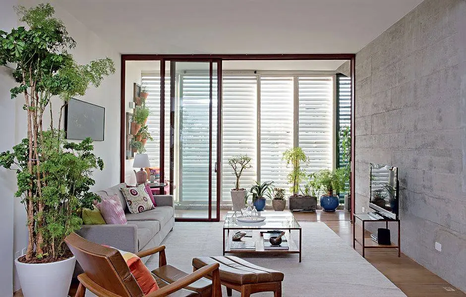 Balcon recreat in interiorul unui living ferestrele largi sprijina iluminatul natural si dezvoltarea armonioasa a plantelor