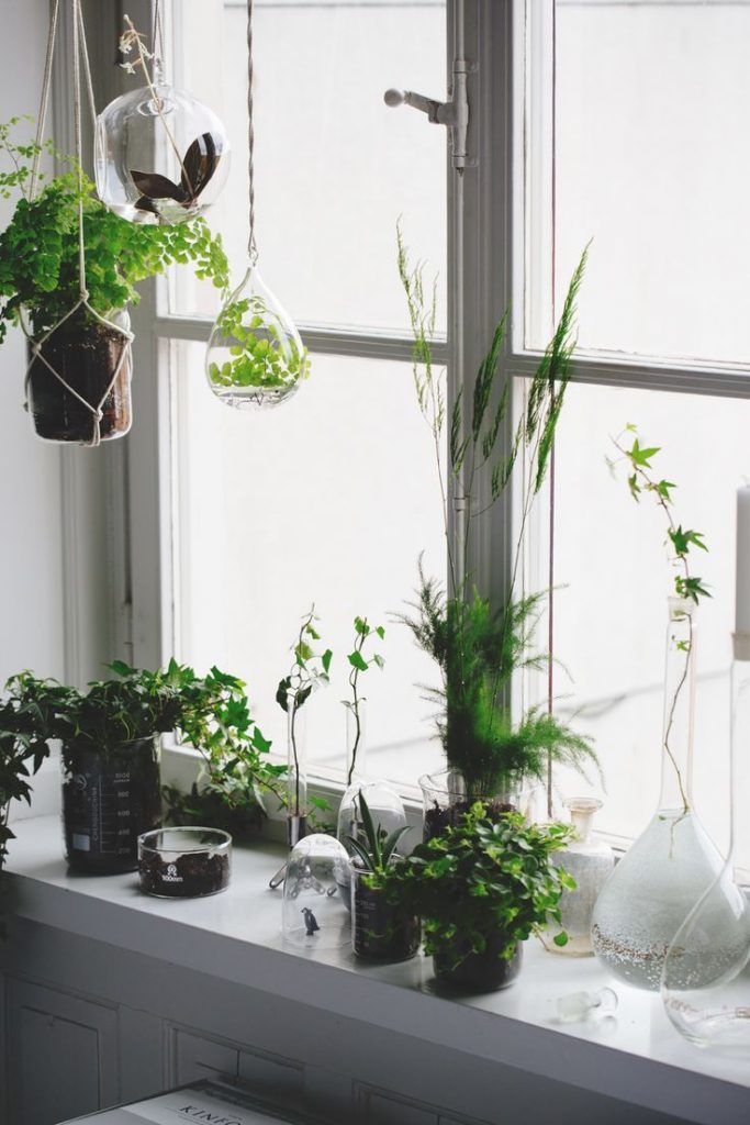 Fereastra fara draperii si perdele ofera lumina suficienta plantelor coltul verde de la pervaz suplineste ideea de balcon