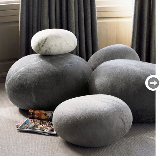 Pernute. Folositi griul ca accent in design interior. Cateva permute pentru canapea, sau poate chiar o masuta de cafea, sau un pouf in living sunt o modalitate de a folosi griul in amenajare.Sursa: styleathome.com